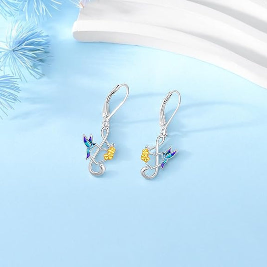 WINNICACA Sterling Silver Dangle Drop Leverback Stud Climber Earrings for Women Girls Flower Animal Jewelry Gifts for Birthday Christmas