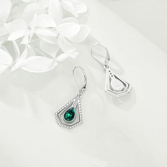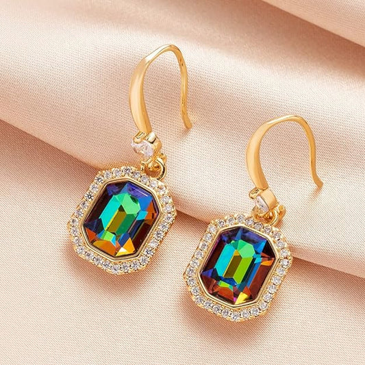 Crystal Earrings CXUEMH Teardrop Earrings for Women Blue and Green Dangle Earrings Elegant Earrings for Prom Emerald Green Earrings Formal Jewelry Crystal Drop Earrings