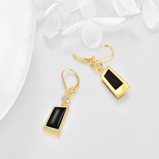 Black Onyx Earrings Sterling Silver 18K Yellow Gold Plated Filigree Boho Dangle Earrings Jewelry Gifts for Women Girls