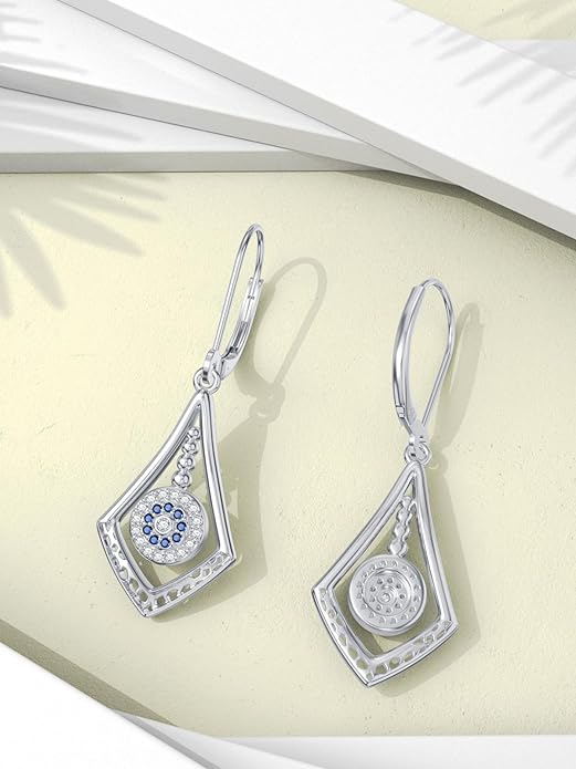 YAFEINI Evil Eye Earrings Sterling Silver Leverback Evil Eye Dangle Drop Earrings Turkish Protection Jewelry for Women Girls