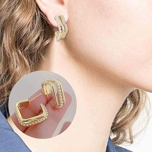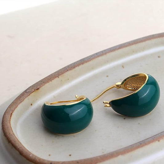 Sonateomber Thick Chunky Huggie Hoop Earrings for Women Girls – Statement Vintage Gold Pated Cubic Zirconia Sensitive Ears Hypoallergenic Stud Jewelry Gift…
