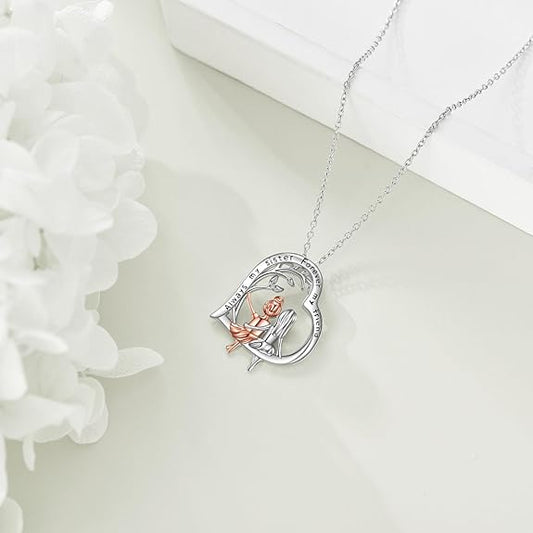 NIFUNAO Sisters Gifts from Sister Sterling Silver 2 Sisters Pendant Necklace Heart Necklace Friendship Jewelry Gift for My Sister