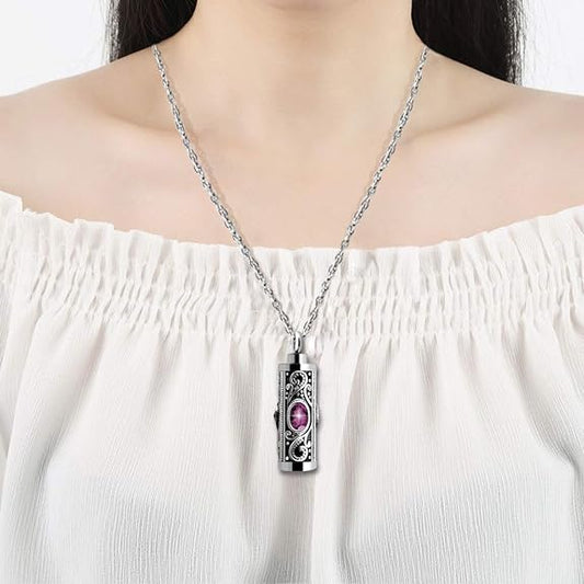 XIUDA Cremation Urn Necklace for Ashes Eternal Memory Carved Keepsake Stainless Steel Urn Jewelry Memorial Ash Holder