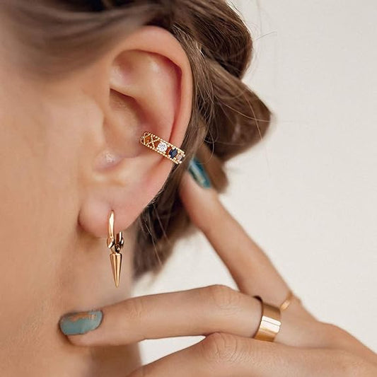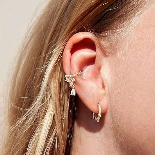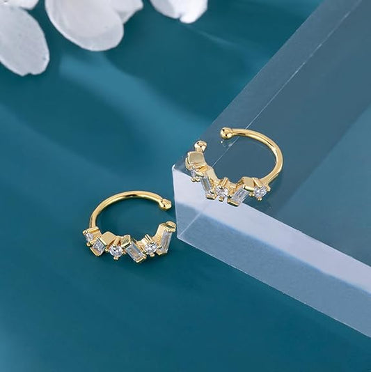 Dainty Hoop Ear Cuff 14K Gold Plated Cross Stripe Open Wrap Hoop Cubic Zirconia Huggie Clip-on Cartilage Earrings Stud for Women