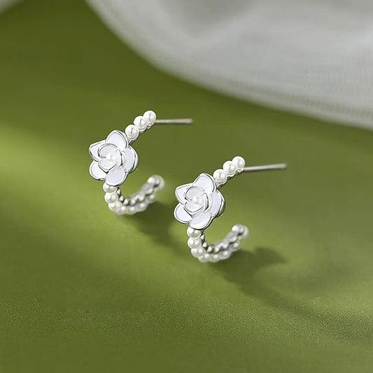 SLUYNZ Sterling Silver Flower Pearls Hoop Earrings for Women Teen Girls Huggie Earrings Wedding Earrings for Statement Bridal Mothers Day Gifts Jewelry