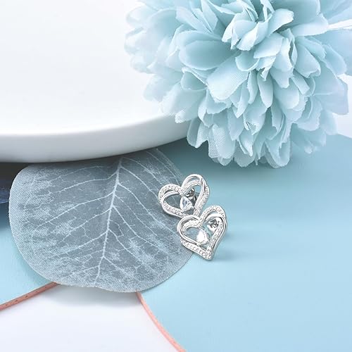 AOBOCO 925 Sterling Silver Birthstone Heart Stud Earrings, Anniversary Valentine's Birthday Jewelry Gifts for Women Girls