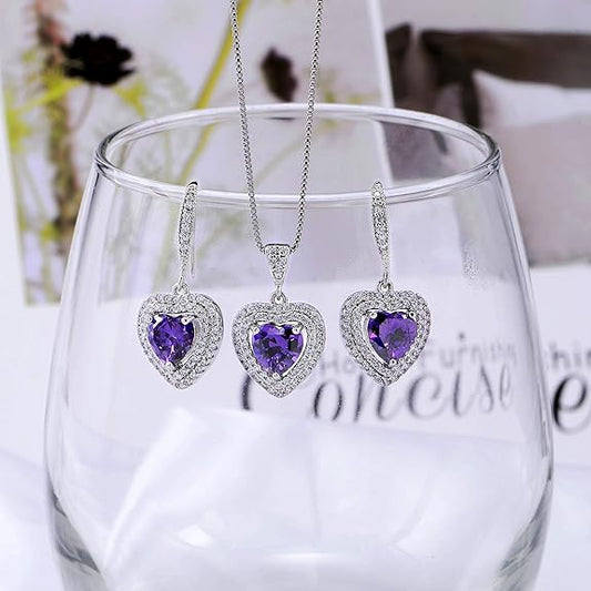 AMYJANE Crystal Jewelry Set Bride Bridesmaid- Sterling Silver Heart Shape Cubic Zirconia Crystal Bridal Pendant Necklace Earrings Set for Women