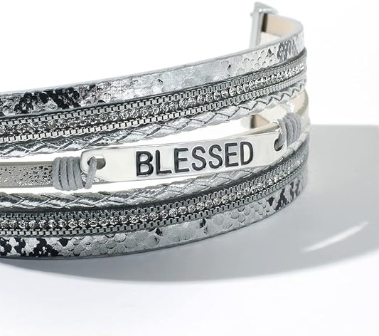 Vercret Leather Wrap Bracelet for Women - Multi-Layer Bracelets with Magnetic Clasp Bangle Cuff Stacked Bracelet for lady and Mother