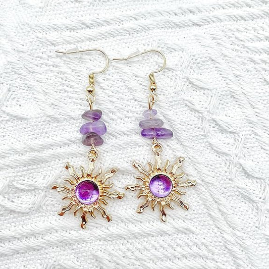 Crystals Stone Water Transparent Sunflower Dangle Earrings for Women, Natural Healing Gravel Sun Earrings, Gifts for Women Girls