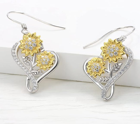 925 Sterling Silver Sunflower Earrings for Women - Hypoallergenic Cubic Zirconia Infinity Heart Dangle Jewelry for Teen Girls Family