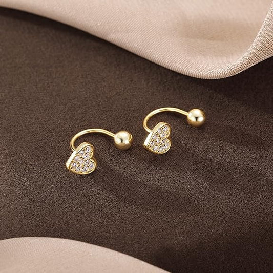 SLUYNZ Sterling Silver Small CZ Heart Half Hoop Earrings for Women Teen Girls Love Half Hoop Earrings Cartilage Helix Piercing Ball Studs