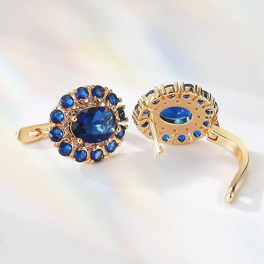 Sapphire Earrings for women,Cubic Zirconia Stud Earrings 18K Gold Plated Crystal Flower Earrings
