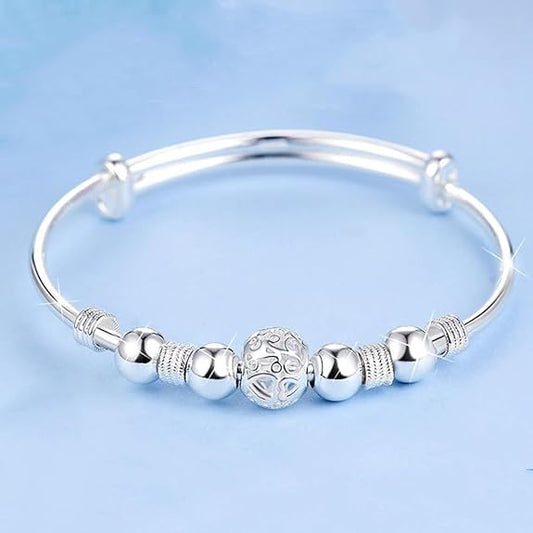 Sterling Silver Bangle Bracelets for Women, Mother's Day Gift 925 silver Cuff Bracelet Adjustable Jewelry Fashion Simple Open Bangles Cuff Jewelry for Women Mom Wife Valentine Gift
