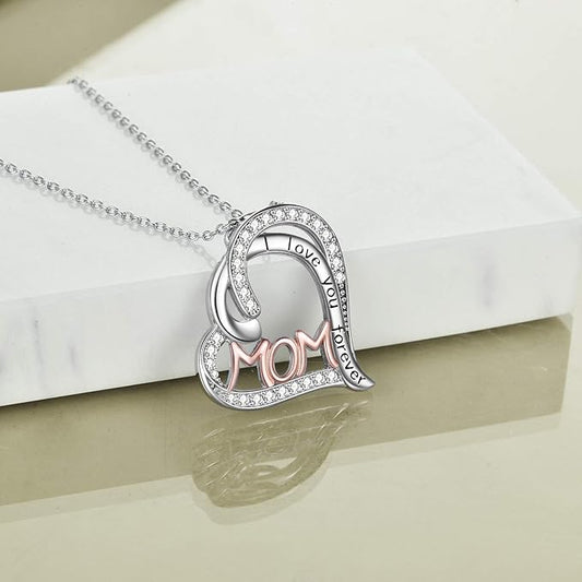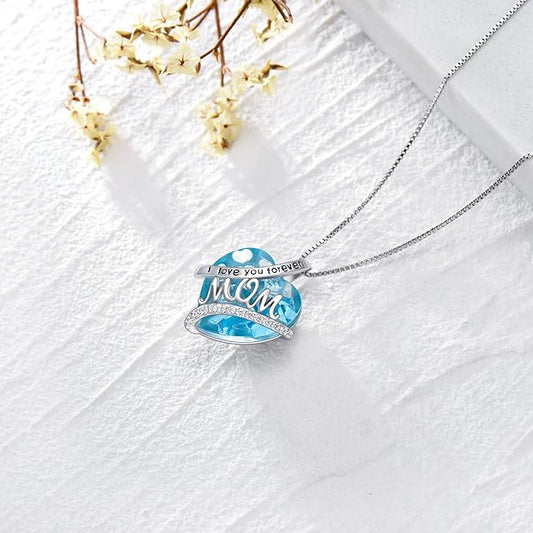 Mothers Necklace Gifts for Mom from Daughter Son, 925 Sterling Silver I Love You Mom Necklace Heart Birthstone Pendant Jewelry Birthday Mothers Day Valentines Day Gifts for Women Mom