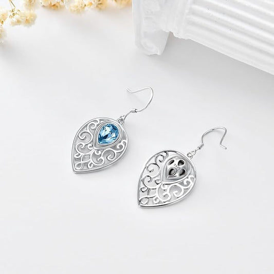Teardrops Earrings 925 Sterling Silver Filigree With Blue Cubic zirconia Teardrops Dangle Drop Hook Earrings for Women and Teen Girls