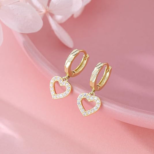 SLUYNZ 925 Sterling Silver Delicate CZ Heart Small Hoop Earrings for Women Teen Girls Sweet Love Heart Drop Huggie Earrings