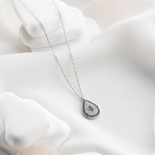 925 Sterling Silver Necklace for Women | 18-Inch Genuine Zircon Blue Evil Eye Drop Pendant | Women's Rhodium-Plated Jewelry, Dainty Gift for Girls