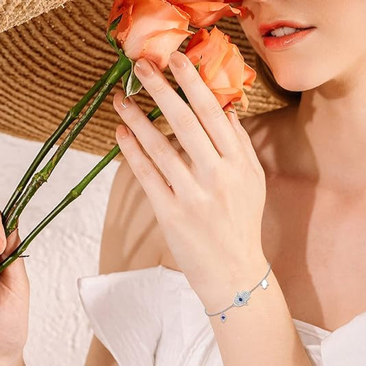 Blue Evil Eye Bracelets 925 Sterling Silver Bracelets for Women Hand of Fatima Zirconia Bracelet Jewelry Gifts for Women