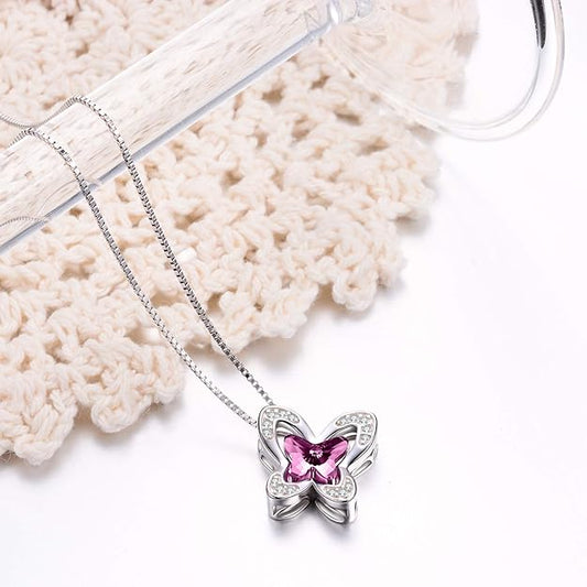 AOBOCO Sterling Silver Butterfly Pendant Necklace Embellished with Crystals from Austria, Dreamy Morpho Helena Butterfly Gifts for Butterfly Lovers, Fine Jewelry Gifts for Women