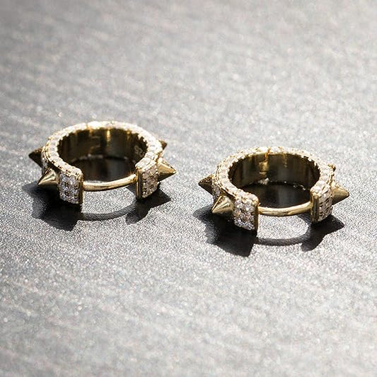Cool Punk Style Iced Cz 14K Yellow Gold Plated 925 Sterling Silver Small Trendy Spike Thorn Hoop Earrings for Women Nickel Free Hypoallergenic Huggie Hoops Earrings