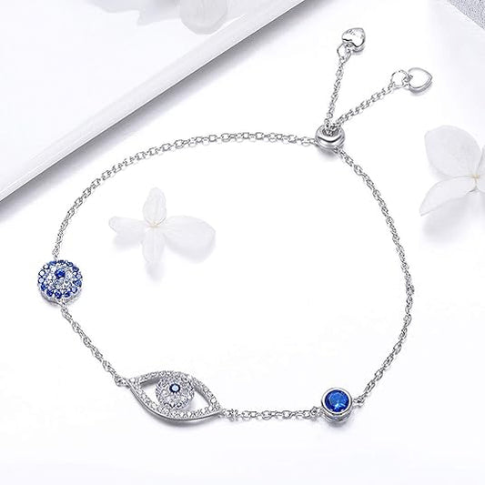 WOSTU Women Evil Eye Protection Bracelets 925 Sterling Silver White Gold Plated Adjustable Bracelets