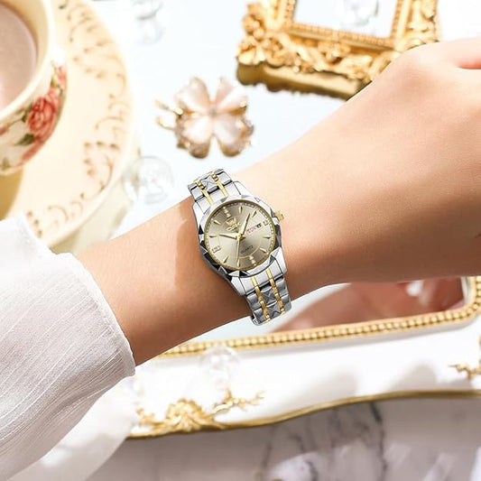 OLEVS Luxury Ladies Watches,Women's Watch with Day and Date,Female Watch for Small Wrist,Gold Stainless Steel Watches for Women,Easy Read Ladies Wrist Watches Waterproof(Adjustable Strap
