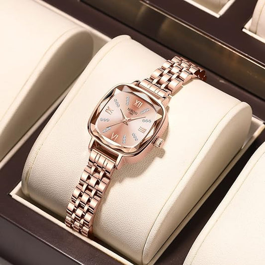 NIBOSI Women's Watches Analog Square Green Dial Watch for Women Stylish Diamond Rose Gold Dress Wrist Watch with Stainless Steel Strap…
