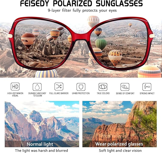 FEISEDY Womens Polarized Sunglasses, Trendy Elegant Colored Frame for Ladies, UV400 Protection B2760