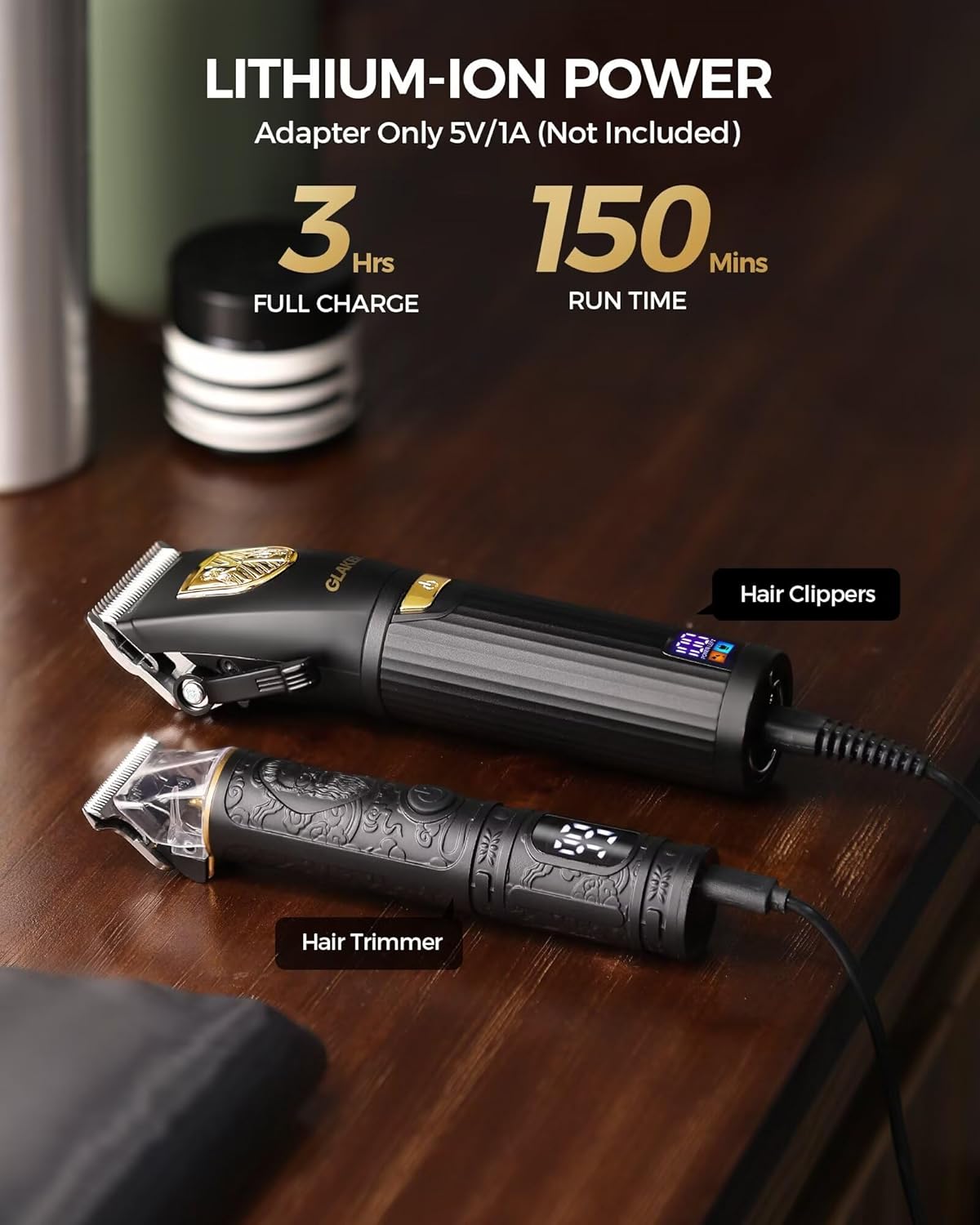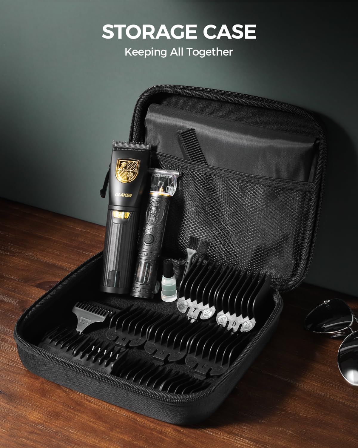 GLAKER Hair Clippers for Men,Professional Mens Hair Clippers Cordless Clippers for Hair Cutting,Precision Trimmer Kit Zero Gap Trimmer with LED Display 15 Guide Combs (Black+Gold)
