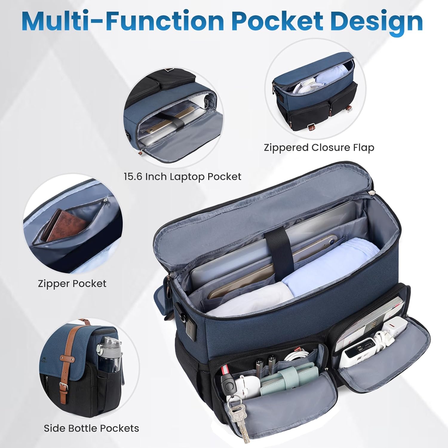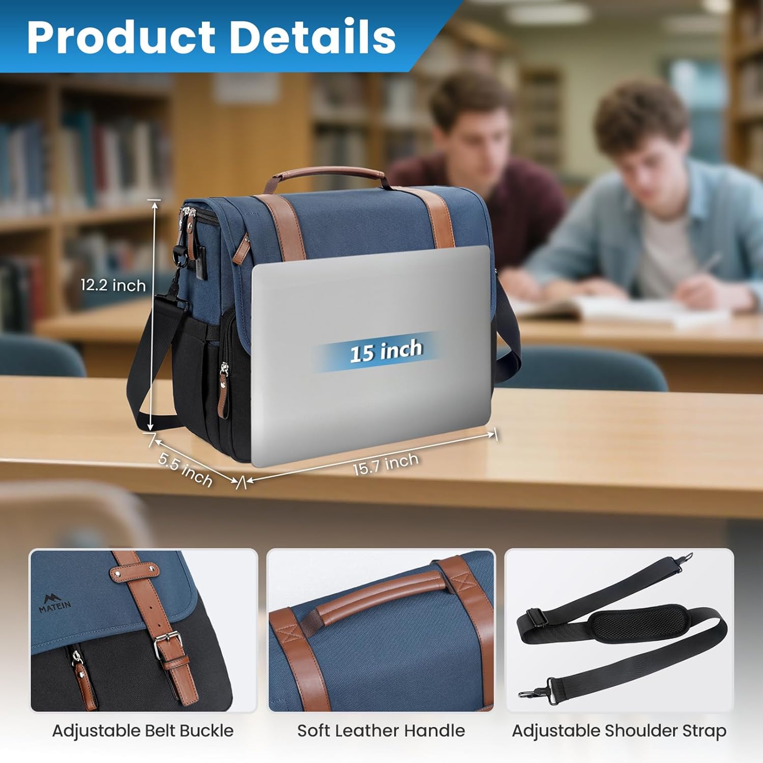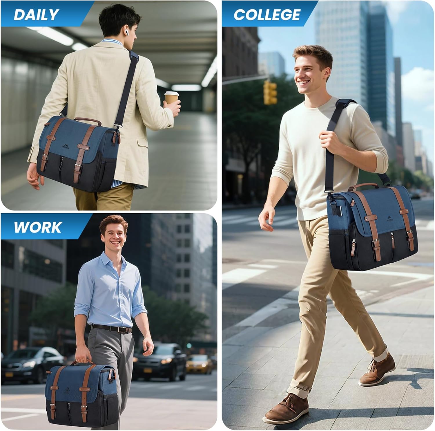MATEIN Messenger Bag for School with USB Charging Port, Large Crossbody Satchel 15.6 inch Student College Laptop Bags with Shoulder Strap, Water Resistant Work Computer Briefcase for Office Commuting