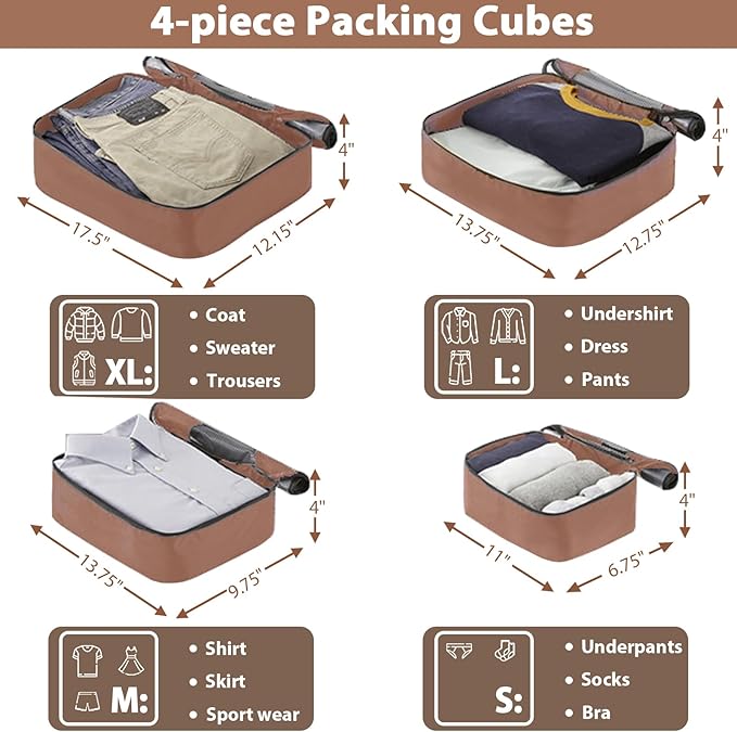 - 【ORGANIZED INTERIOR】The suitcase features two large compartments, a mesh zipper compartment and cross straps, giving you plenty of storage and organization space. It is also equipped with Packing Organization Cubes 4 Pack to help you store and organize.