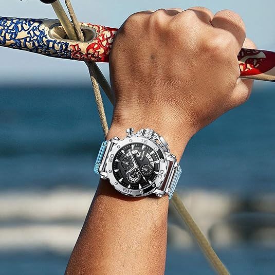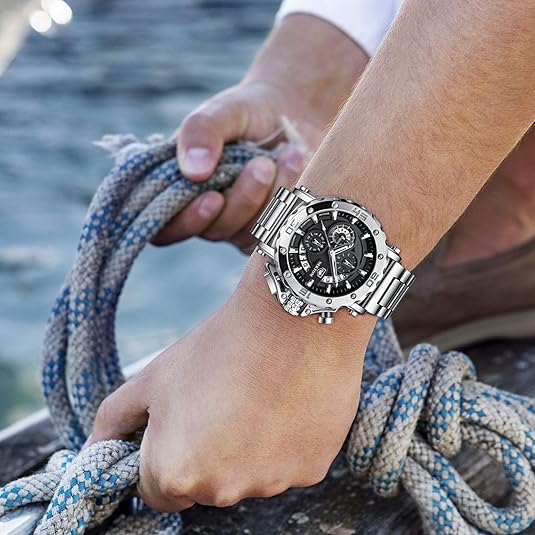 NEKTOM Watches for Men with Stainless Steel, Quartz Analog Watch with Date, Luxury Minimalist Dress Mens Watches, Chronograph Watch, 3ATM Waterproof, Black Wristwatch, Gifts for Men