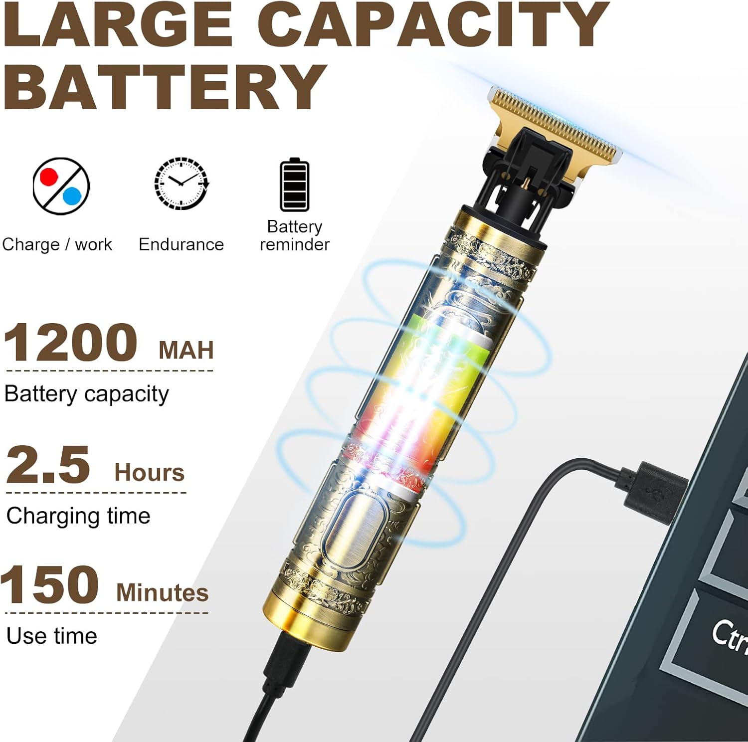 【T-Style Zero-Gap Cutter Head】Adorned with a precision-crafted T-shaped stainless steel cutter head, 4cm wide, this clipper seamlessly blends artistry with...