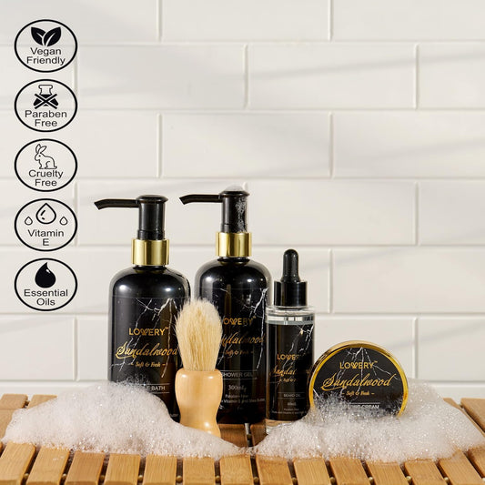 Bath Gift Baskets for Men, Boyfriend, Him, Dad, Sandalwood Mens Grooming Kit, Birthday Gifts for Men, Bath and Body Self Care with Bubble Bath, Beard Brush and More, Beard Care and Spa Set