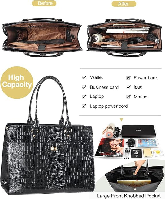 17.3 Inch Leather Laptop Tote Bag,Waterproof Briefcase Professional Business Office Work Bag